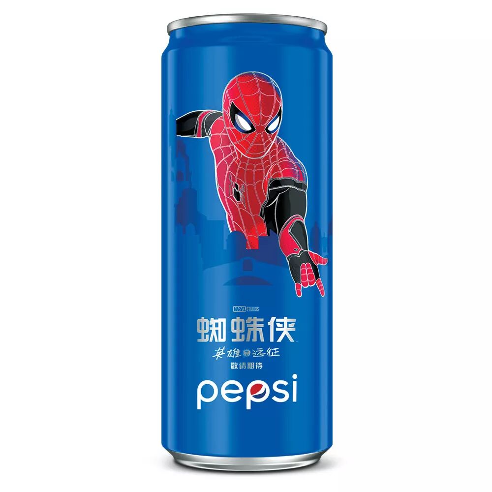 百事可乐蜘蛛侠版电影限量发售:百事可乐细长罐330ml包装上印上了蜘蛛侠英雄远征敬请期待!据悉,百事集团官方旗舰店上单笔购买百事蜘蛛侠细长罐两箱(330*24)2箱赠送《蜘蛛侠:英雄远征》电影票2张。